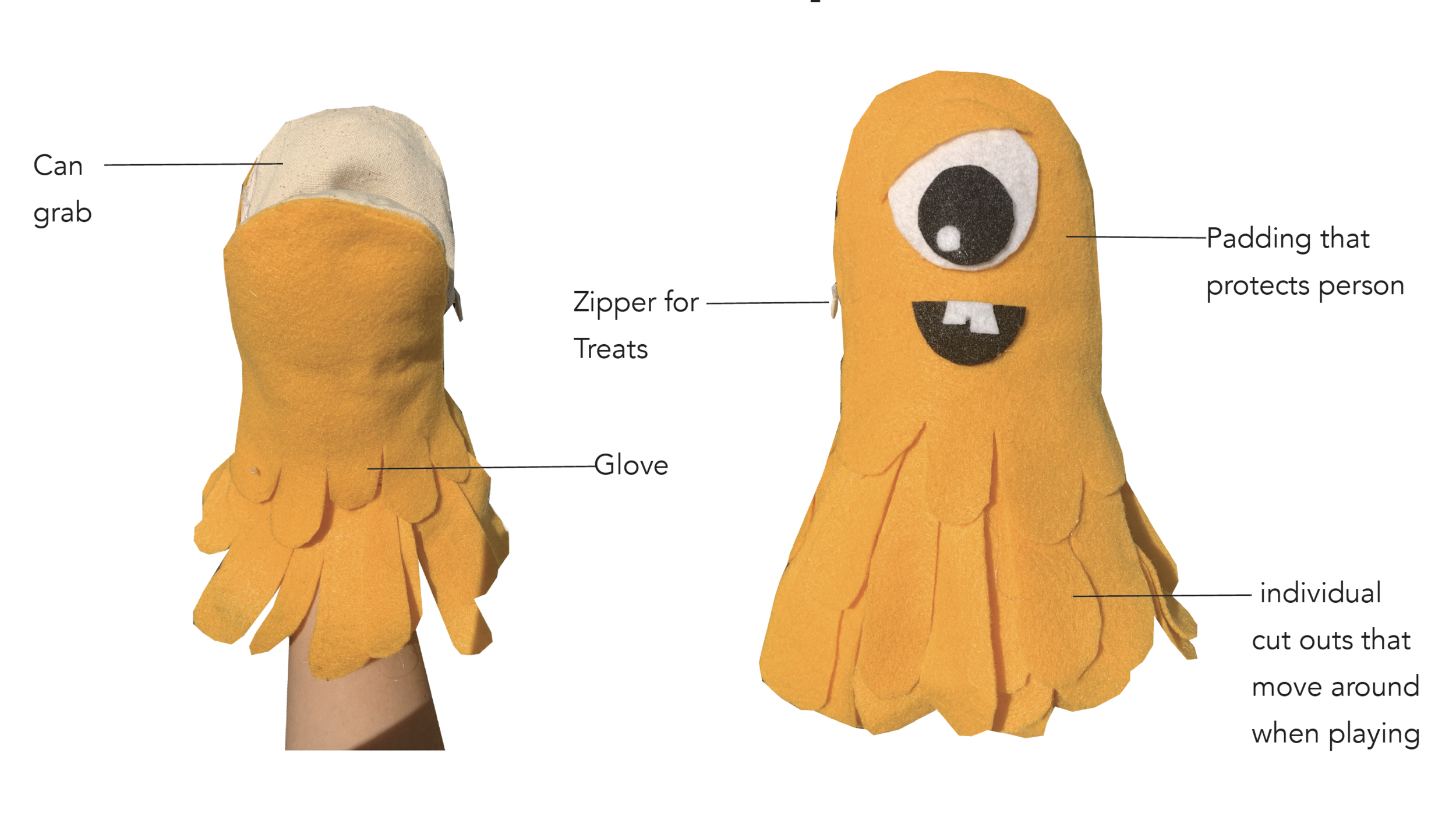 The toy contains treats inside that can be given while protected by the glove.